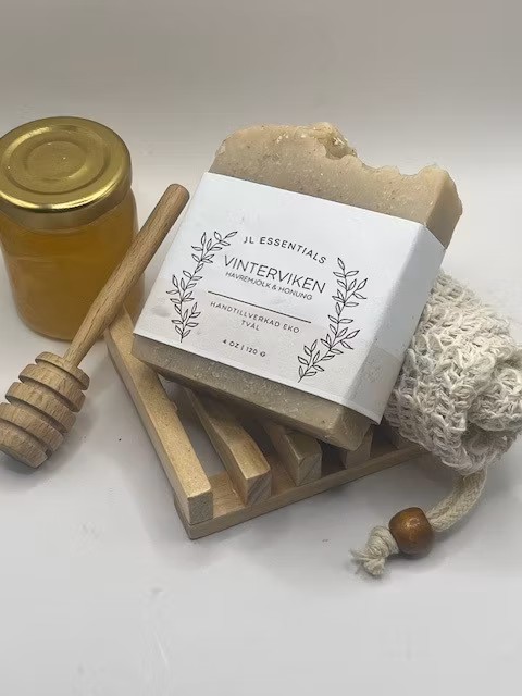 Vinterviken en härligt mjukgörande tvål med havre som ger lätt skrubbeffekt och honung som har naturligt fuktbevarande effekt på din hud.