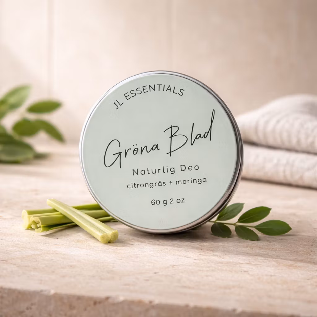 Väck kroppen med en deodorant som känns lika ren som morgonluft. Gröna Blad kombinerar den livliga, citrusfräscha doften av citrongräs med den mjukt gröna, näringsrika karaktären hos moringa. Resultatet? En naturlig deodorant som ger både klarhet och harmoni – samtidigt som den tar hand om din hud på ett skonsamt sätt.